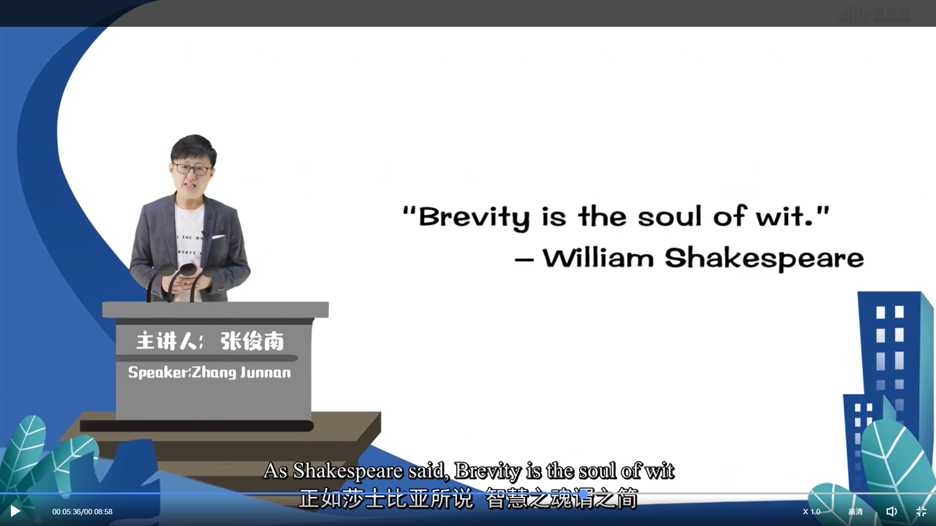 《英语演讲》线上课程采用全英文授课并配有中英双语字幕,这一独特设计充分考虑了不同英语水平学生的学习需求,既保证了语言学习的纯正性,又确保了知识传递的有效性。课程以 “修炼英语演讲,让世界听到你的中国声音”为口号,将价值塑造、能力培养和知识传授有机结合,形成了独具特色的教学理念。课程设计特别注重思政元素的有机融入,通过精心设计的演讲主题引导学生厚植爱国主义情怀,弘扬民族精神与时代精神。课程内容不仅涵盖英语演讲基础知识和能力提升技巧,还巧妙融入国际时事和中国特色议题,实现了知识传授与价值引领的完美结合。